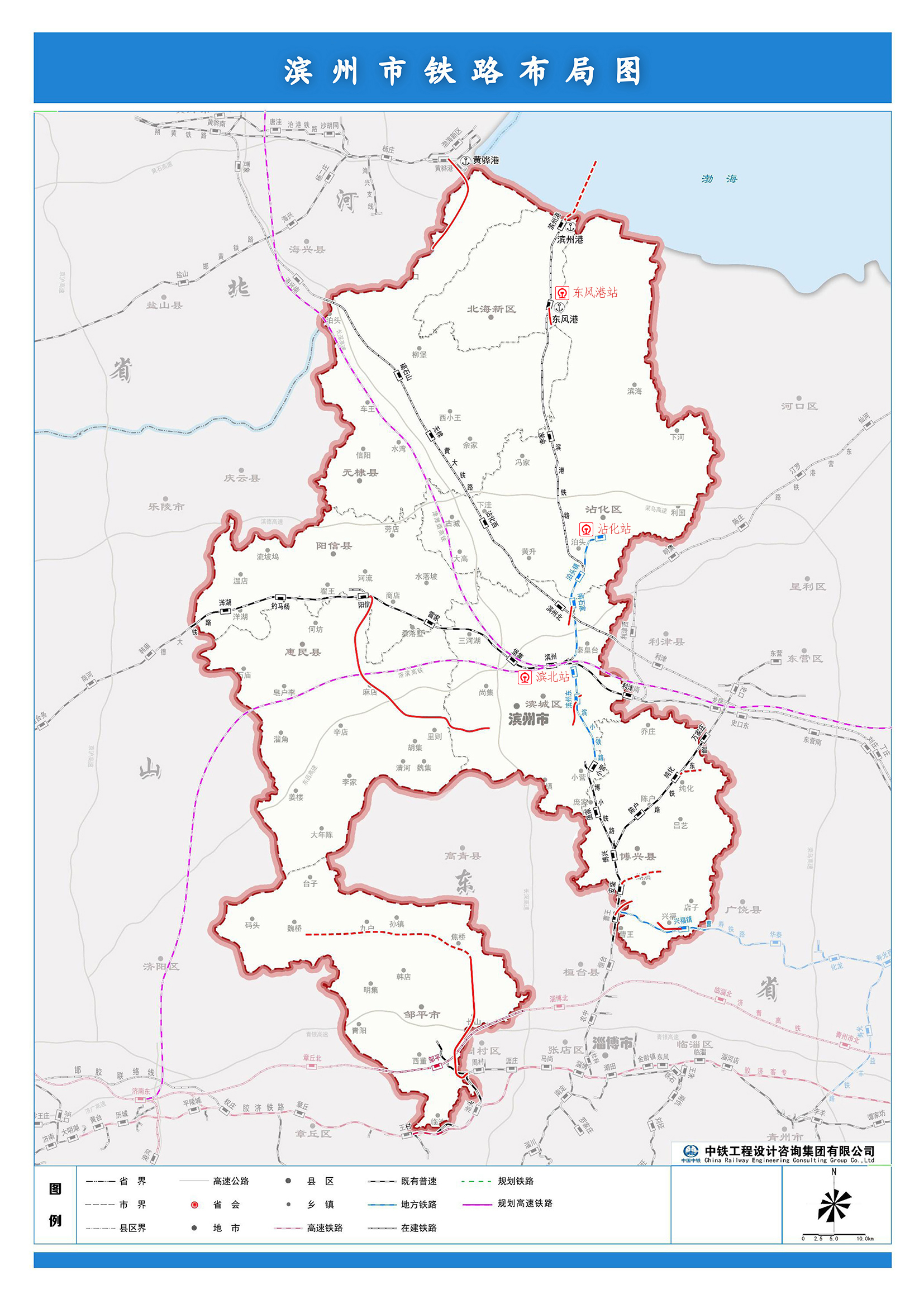 公司承建的濱港鐵路一期濱州至沾化段工程項目全長26.15km,總投資為2.6億元,于2009年9月開始運營。濱港鐵路二期工程沾化至濱州港段項目全長65.32km,線路設(shè)計貨運輸送能力近期1000萬噸/年,遠期2200萬噸/年,概算總投資27.4億元,于2021年8月底開通運營。濱港鐵路全線設(shè)貨運站4個,分別為:濱州北站、沾化站、東風(fēng)港站、濱州港站,開辦全國鐵路貨物直通運輸業(yè)務(wù)。濱港鐵路中間連接黃大鐵路、德龍煙鐵路,南經(jīng)博小線、淄東線與膠濟線貫通,過臨沂再往南連接隴海線。濱港鐵路的建成,將進一步提升濱州市基礎(chǔ)設(shè)施的支撐能力,促進全市特別是北海新區(qū)的開發(fā)和濱州港的建設(shè),對黃河三角洲高效生態(tài)經(jīng)濟示范區(qū)建設(shè)和環(huán)渤海經(jīng)濟圈崛起發(fā)揮重要的作用。